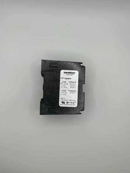 Marathon Special Products terminal blocks are high-quality, reliable electrical components used to secure and organize electrical wiring in various industrial, commercial, and residential applications. These terminal blocks are designed to simplify wiring connections, provide electrical safety, and enhance the efficiency of electrical systems. Marathons 1322570 is a distrubtion block with 1 in and 4 out. It has a wire range on the line side is (1) 2/0 - #14 AWG and on the load side is (4) 4 - #14 AWG. It is rated for up to 175A and 600V. The terminal block is rated 10,000A short circuit current. The insulation material is thermoplastic and connector is aluminum, tin plated. This 1322570 distribution block is RoHS complaint.