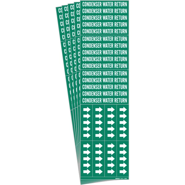 CONDENSER WATER RETURN Pipe Marker Sty 3C Arrows WT on GN 3 per Card, 5 PK