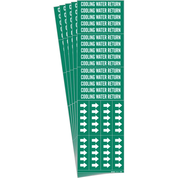COOLING WATER RETURN Pipe Marker Sty 3C Arrows WT on GN 3 per Card, 5 PK
