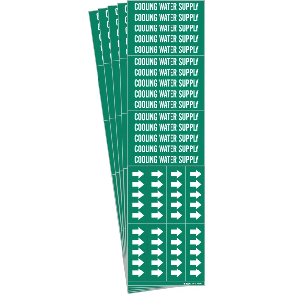 COOLING WATER SUPPLY Pipe Marker Sty 3C Arrows WT on GN 3 per Card, 5 PK