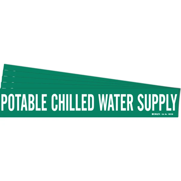 POTABLE CHILLED WATER SUPPLY Pipe Marker Style 1 White on Green 1 per Card, 5 PK
