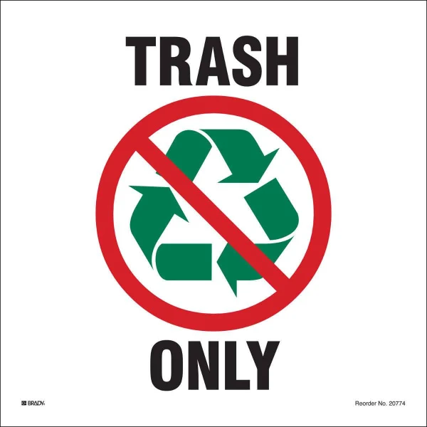 TRASH Only, 10" H x 10" W, Black/Green/Red on White, Pack of 5 Labels