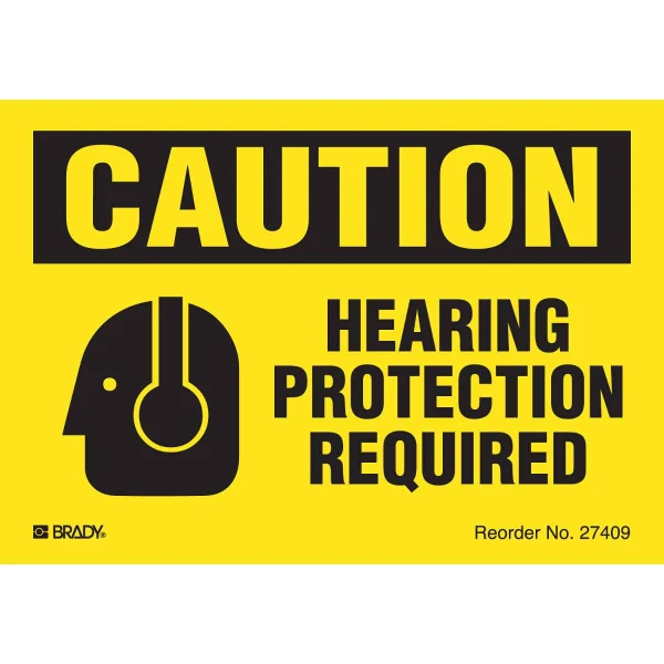 HEARING PROTECTION Required, 3.5" H x 5" W, Black on Yellow, Pack of 8 Labels