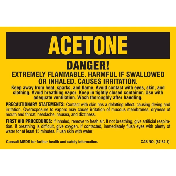B302 2X2.875 BLK/YEL 25/PK ACETONE SIGN