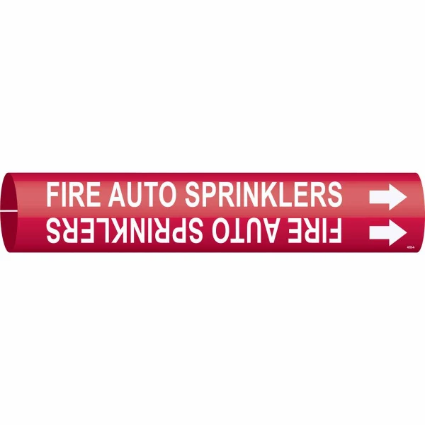 FIRE AUTO SPRINKLERS Pipe Marker, Fits Pipes 0.75" Dia. Thru 1.375" Dia.