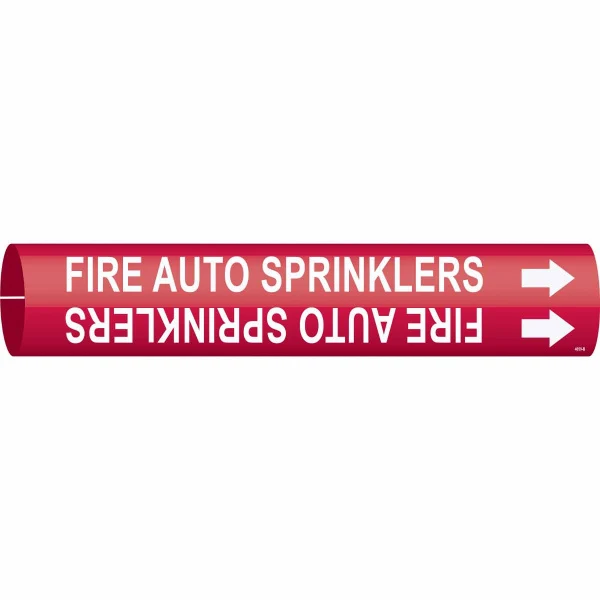 FIRE AUTO SPRINKLERS Pipe Marker, Fits Pipes 1.5" Dia. Thru 2.375" Dia.