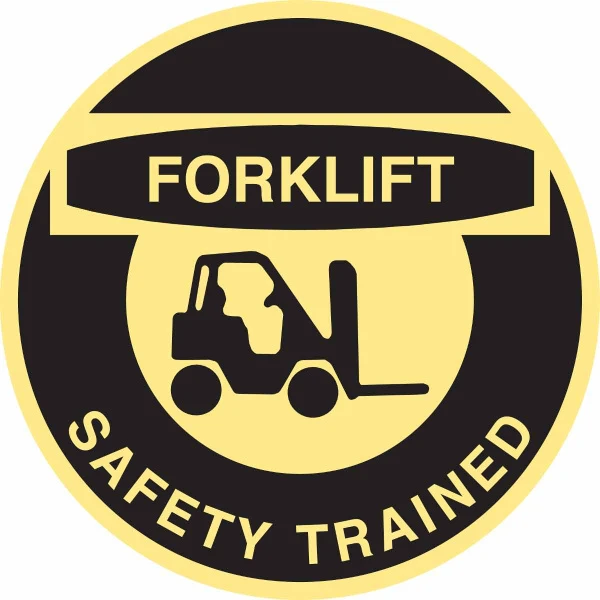 FORKLIFT SAFETY TRAINED Hard Hat Labels, 2" Dia x 0.004 in D, Card of 4 Labels, Black on Yellow
