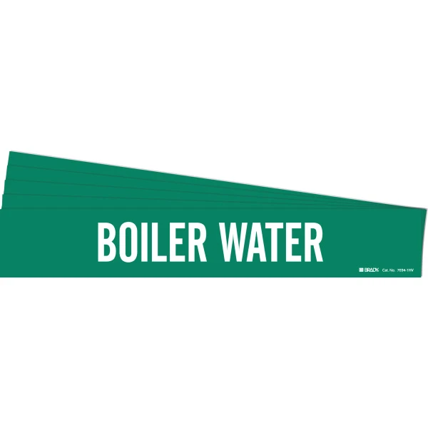 BOILER WATER Pipe Marker Style 1HV White on Green 1 per Card, 5 PK