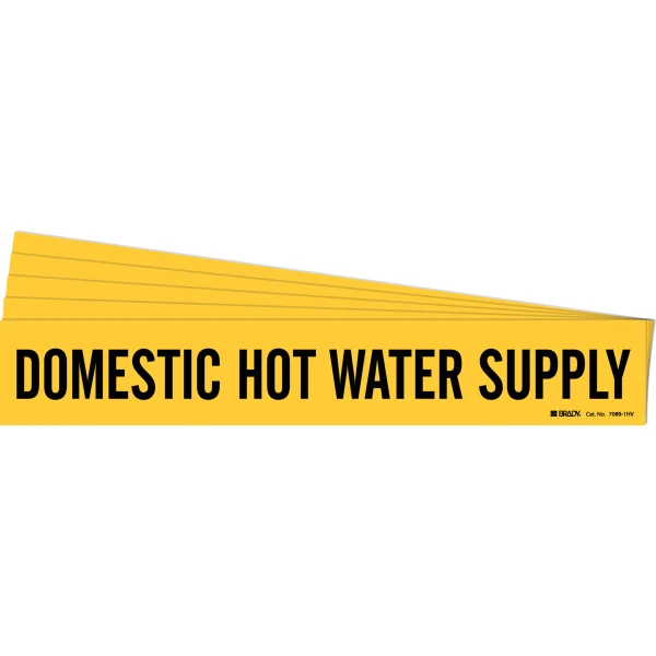 DOMESTIC HOT WATER SUPPLY Pipe Marker Style 1HV Black on Yellow 1 per Card, 5 PK