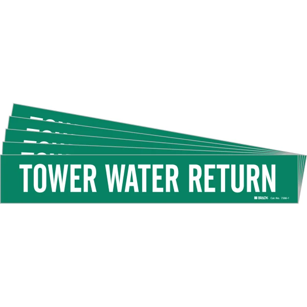TOWER WATER RETURN Pipe Marker Style 1 White on Green 1 per Card, 5 PK