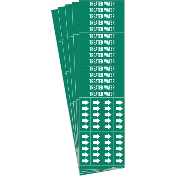 TREATED WATER Pipe Marker Style 3C with Arrows White on Green 3 per Card, 5 PK