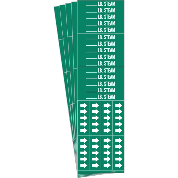 LB. STEAM Pipe Marker Style 3C with Arrows White on Green 3 per Card, 5 PK
