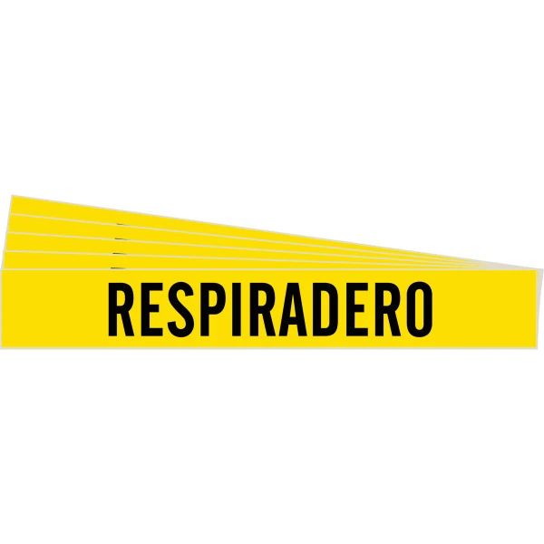 RESPIRADERO Pipe Marker Style 1 Black on Yellow 1 per Card, 5 PK