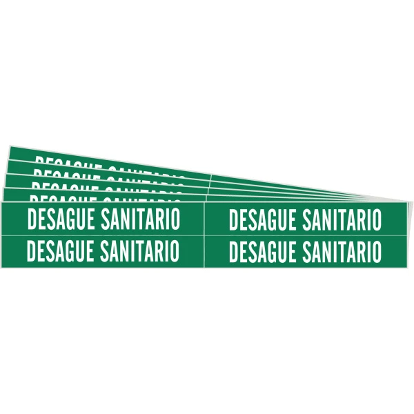 DESAGUE SANITARIO Pipe Marker Style 4 White on Green 4 per Card, 5 PK