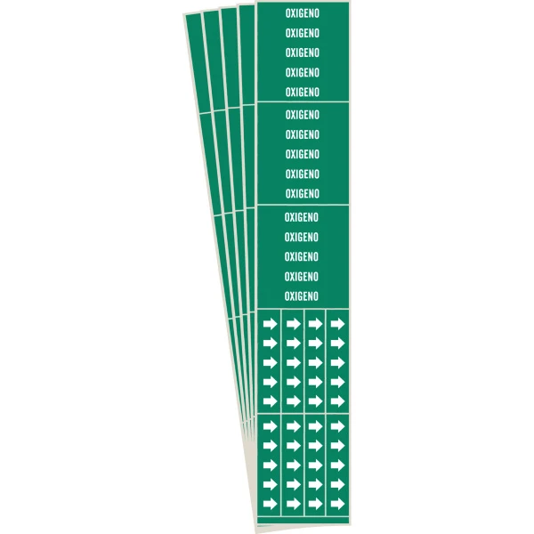 OXIGENO Pipe Marker Style 3C with Arrows White on Green 3 per Card, 5 PK