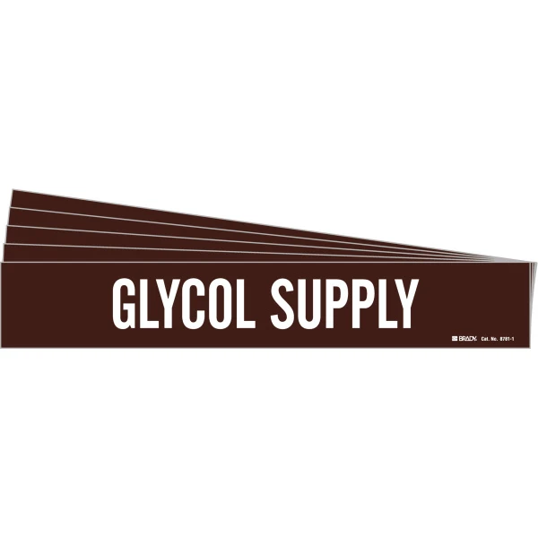 GLYCOL SUPPLY Pipe Marker Style 1 White on Brown 1 per Card, 5 PK