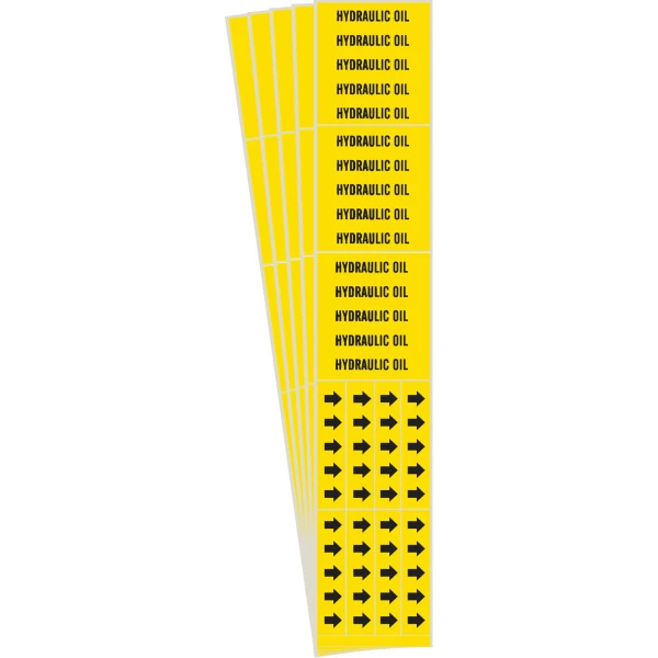 HYDRAULIC OIL Pipe Marker Style 3C with Arrows Black on Yellow 3 per Card, 5 PK