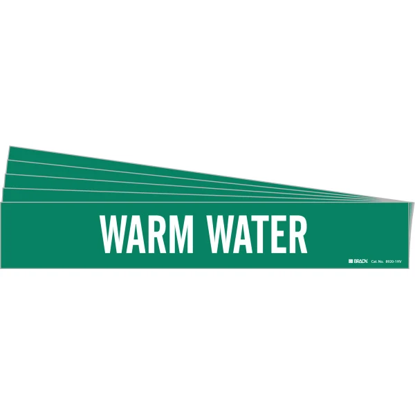 WARM WATER Pipe Marker Style 1HV White on Green 1 per Card, 5 PK