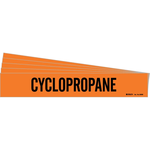 CYCLOPROPANE Pipe Marker Style 1 Black on Orange 1 per Card, 5 PK