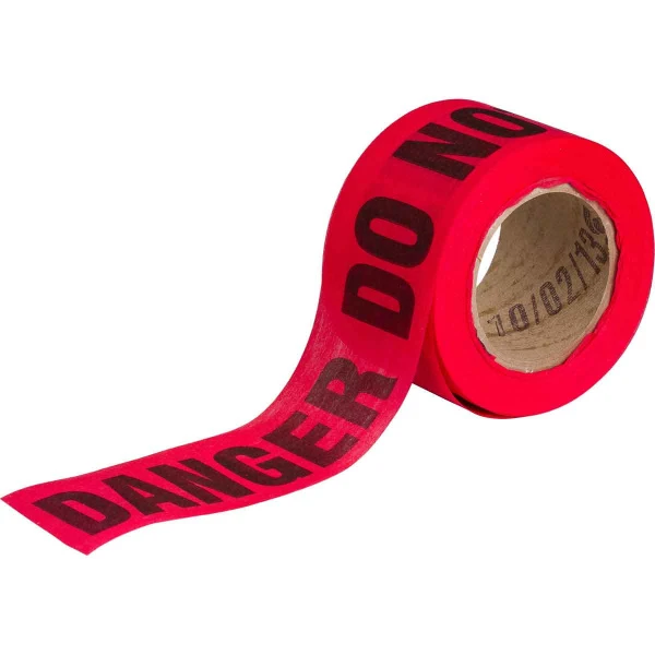 Danger Do Not Enter Barricade Tape, 69% Wood Fiber, Black on Red, 3" x 150'