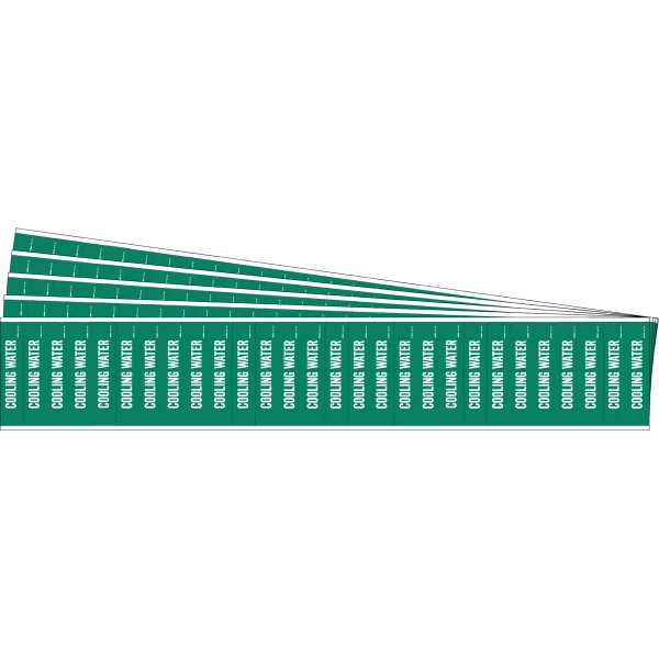 COOLING WATER Pipe Marker Style 28 White on Green 28 per Card, 5 PK
