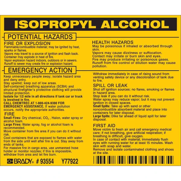ISOPROPYL ALCOHOL Labels, Black on Yellow