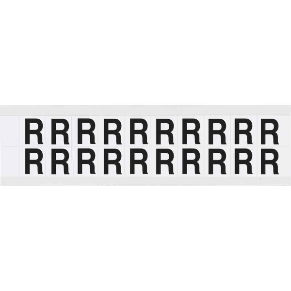 Vinyl 0.625 in Numbers and Letters Black on White R Card of 20 Labels