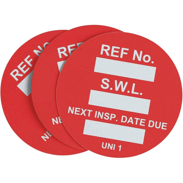 Universal Tag Inserts: REF NO: S.W.L.: NEXT INSP. DATE DUE:, White on Red