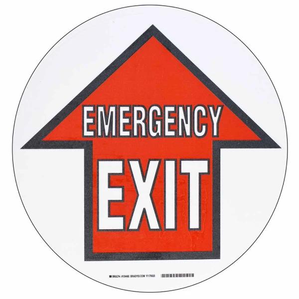 Emergency Exit Up Arrow Sign, 17" Dia x 0.011" Thickness, Black/Red/White, Polyester