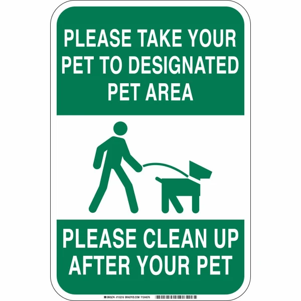 Please Take Your Pet To Designated Pet Area Please Clean Up After Your Pet Sign, 18" H x 12" W x 0.035" D, Aluminum