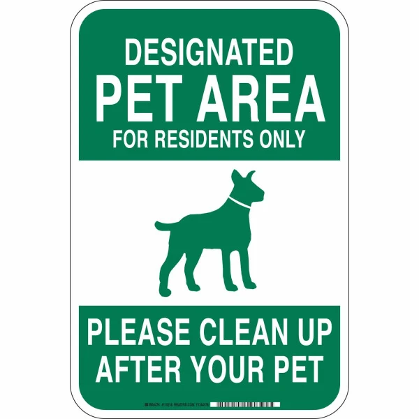 Designated Pet Area For Residents Only Please Clean Up After Your Pet Sign, 18" H x 12" W x 0.035" D