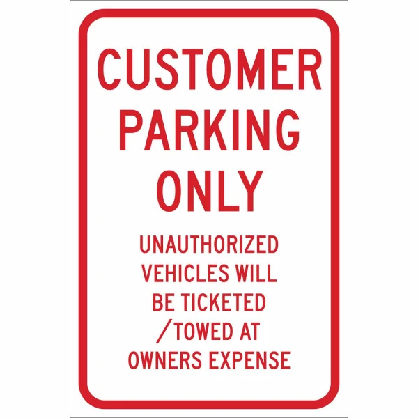 Customer Parking Only Unauthorized Vehicles Will Be Ticketed/Towed At Owner Expense Sign, 18" H x 12" W x 0.090" D, Aluminum
