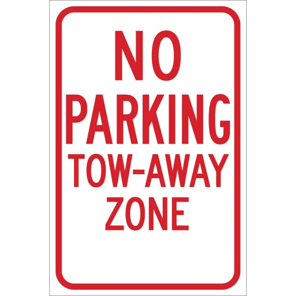 No Parking Tow-Away Zone Sign, 18" H x 12" W x 0.090" D, Red on White