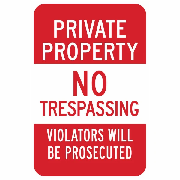 Private Property No Trespassing Violators Will Be Prosecuted Sign, 18" H x 12" W x 0.090" D