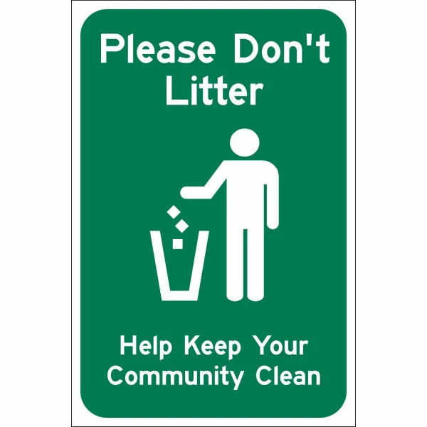 Please Don't Litter Help Keep Your Community Clean Sign, 18" H x 12" W x 0.090" D, Aluminum