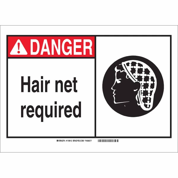 DANGER Hair Net Required Sign, 5" H x 7" W x 0.006" D, Polyester