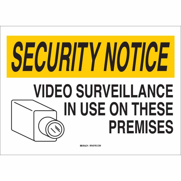 SECURITY NOTICE Video Surveillance In Use On These Premises Sign, 7" H x 10" W x 0.06" D, Black/Yellow on White