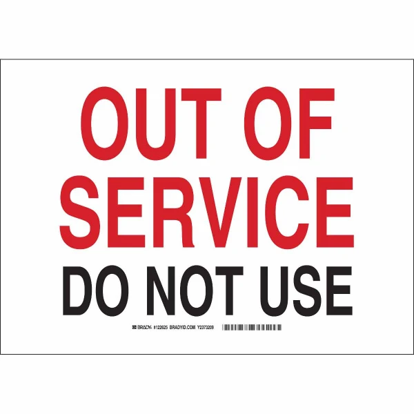 Out Of Service Do Not Use Sign, 10" H x 14" W x 0.006" D, Polyester