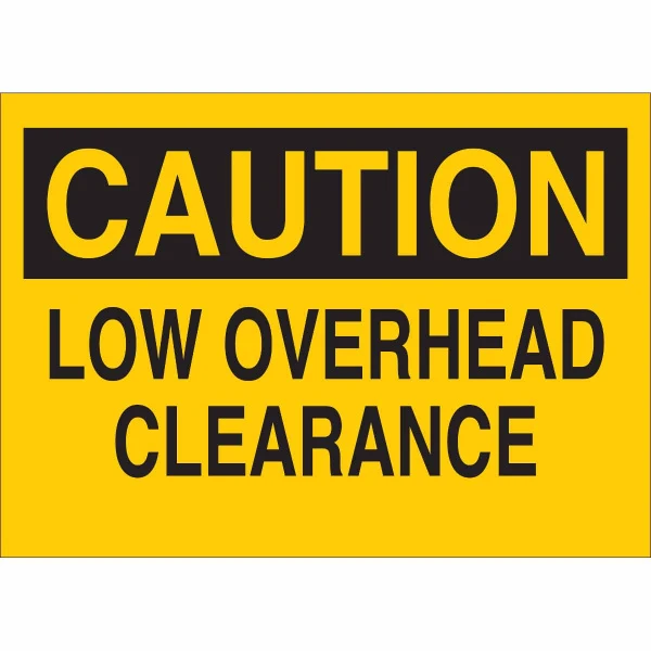 CAUTION Low Overhead Clearance Sign, 7" H x 10" W x 0.1" D, Fiberglass