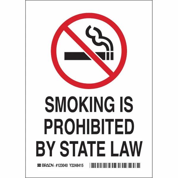 Smoking Is Prohibited By State Law Sign, 10" H x 7" W x 0.06" D, Polystyrene