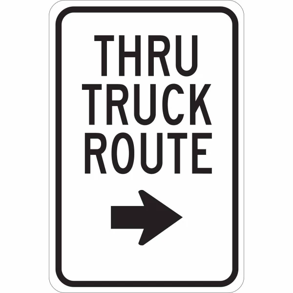 Thru Truck Route Sign, 18" H x 12" W x 0.006" D, Polyester, Arrow Direction Right