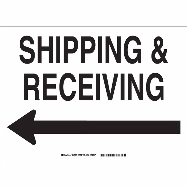 Shipping & Receiving Sign, 10" H x 14" W x 0.006" D, Polyester, Arrow Direction: Left