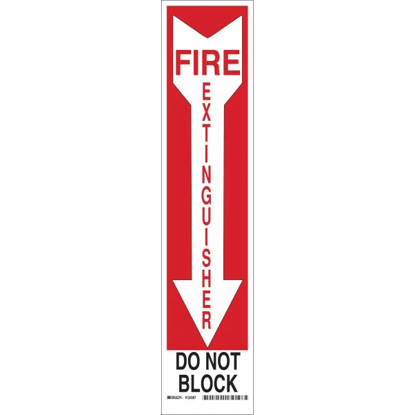 Fire Extinguisher Do Not Block Sign, 18" H x 4" W x 0.006" D, Black/White on Red, Polyester