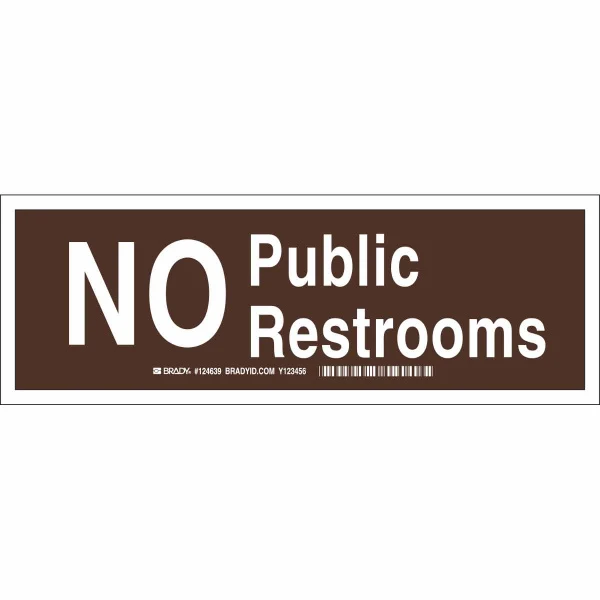 No Public Restrooms Sign, 3.5" H x 10" W x 0.006" D, Polyester