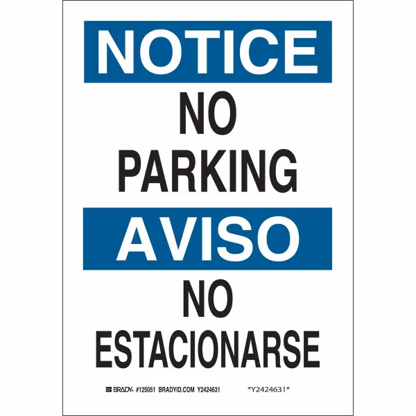 Bilingual NOTICE No Parking Sign, 14" H x 10" W x 0.035" D, Aluminum