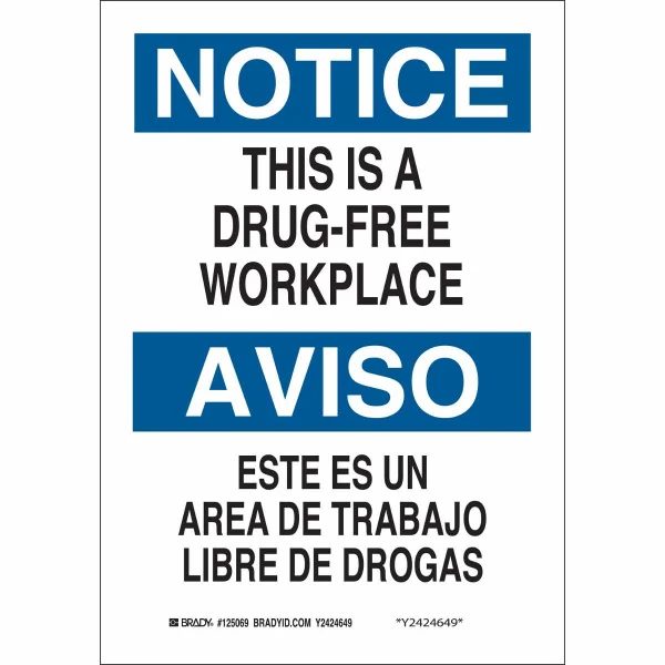 Bilingual NOTICE This Is A Drug-Free Workplace Sign, 14" H x 10" W x 0.035" D, Aluminum