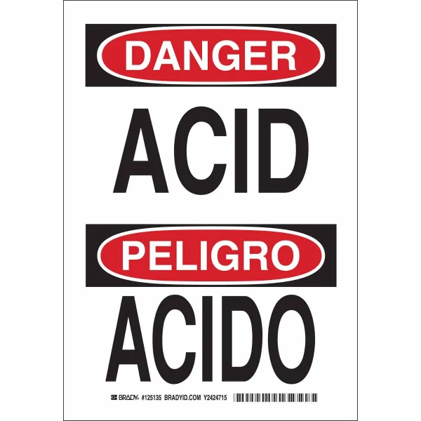 Bilingual DANGER Acid Sign, 14" H x 10" W x 0.035" D, Aluminum