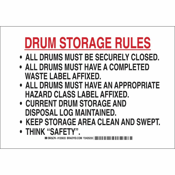 B555 10X14 BLK/RD/WHT DRUM STORAGE RULES
