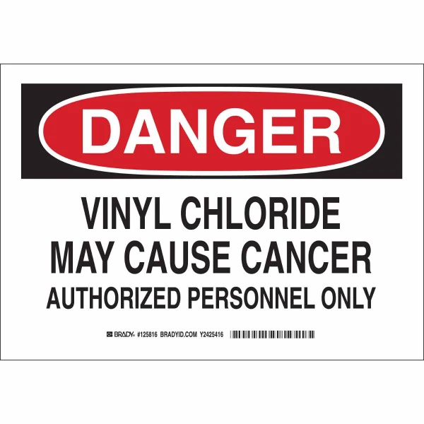 DANGER Chloride May Cause Cancer Authorized Personnel Only Sign, 7" H x 10" W x 0.06" D, Polystyrene