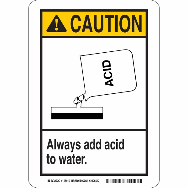 CAUTION Always Add Acid To Water Sign, 10" H x 7" W x 0.06" D, Polystyrene